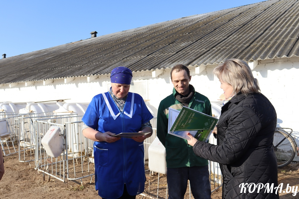 Заслуженные награды принимали оператор машинного доения МТФ «Октябрёво» Тамара Сапоженко, животновод МТФ «Октябрёво» Алексей Бурдоленко и животновод МТК «Литвиновичи» Алексей Давыденко. Елена Короедова вручила каждому Благодарственные письма и подарочные сертификаты, а также выразила искреннюю признательность за ежедневный нелёгкий, но важный, нужный и очень ответственный труд, за заботу о животных и личный вклад в развитие района и продовольственную безопасность страны.