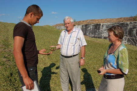 Главный агроном КСУП«Совхоз «Богдановичи» С.С. Бритов, заместитель председателя райисполкома В.Д. Андрианов, заместитель начальника райсельхозпрода по экономике В.В. Царанкова проверяют качество измельченной кукурузы