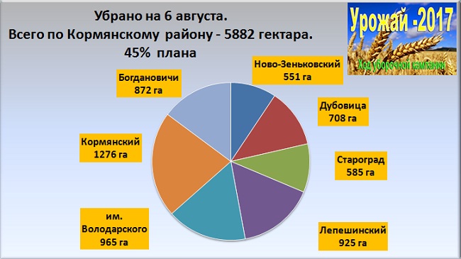 Ход уборочной кампании в Кормянском районе. Информация на 6 августа
