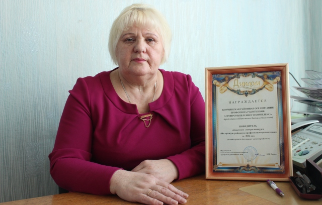 Дипломом победителя областного смотра-конкурса «На лучшую районную профсоюзную организацию за 2016 год» (в категории до 2 тысяч членов профсоюза) была награждена председатель Кормянской организации профсоюзов работников агропромышленного комплекса Людмила Шатликова. Поздравляем Людмилу Моисеевну.