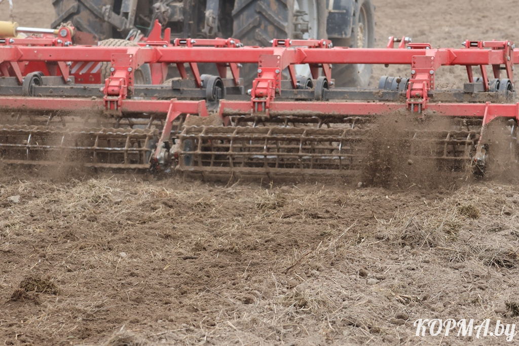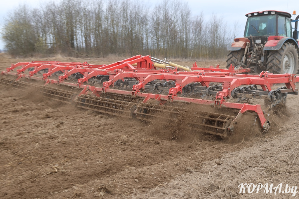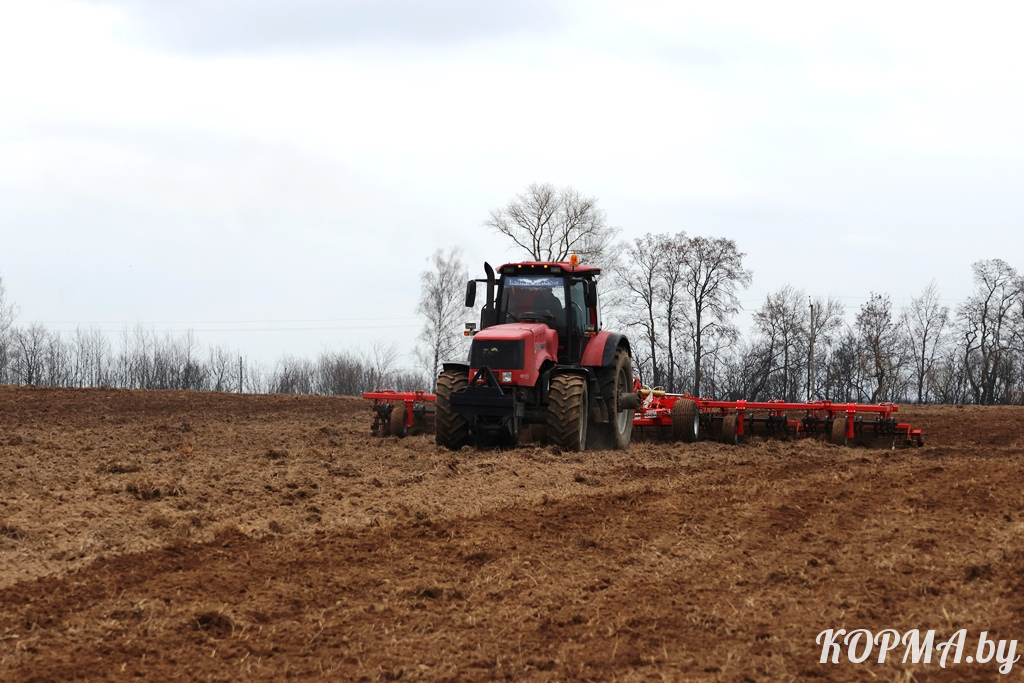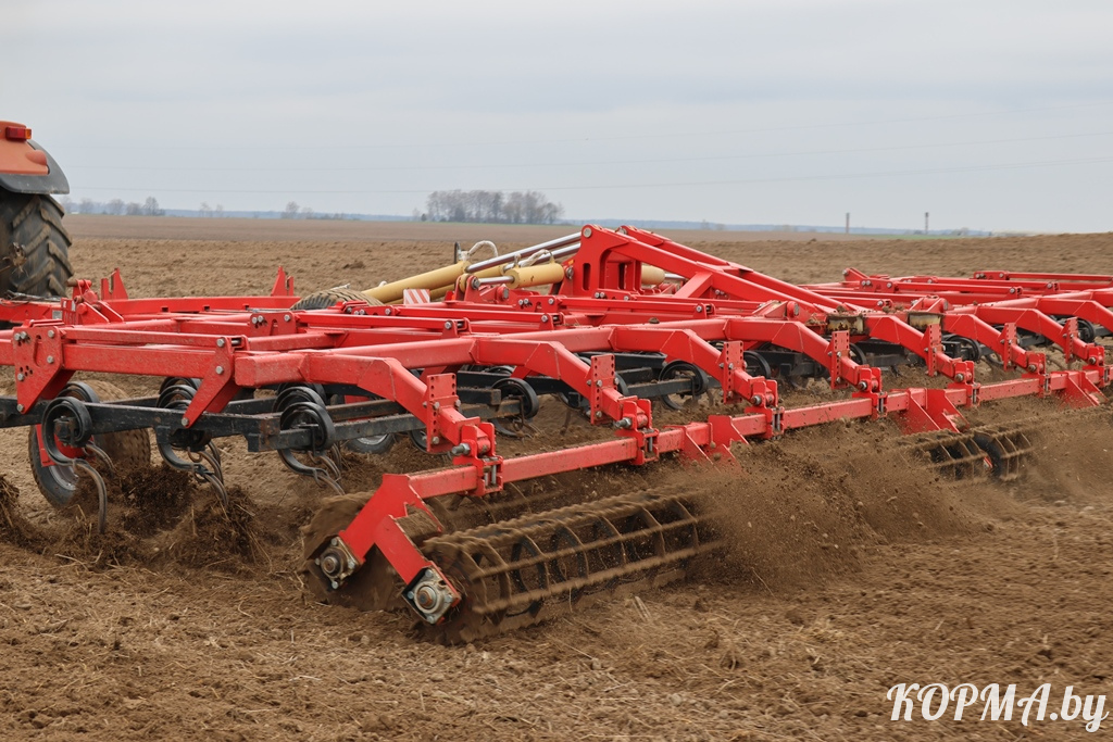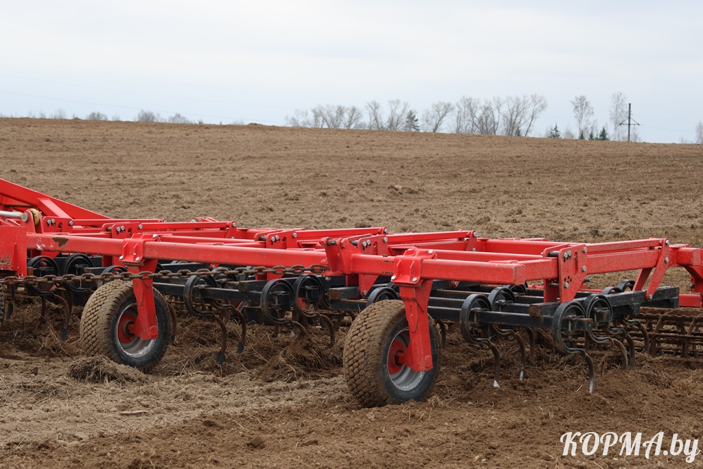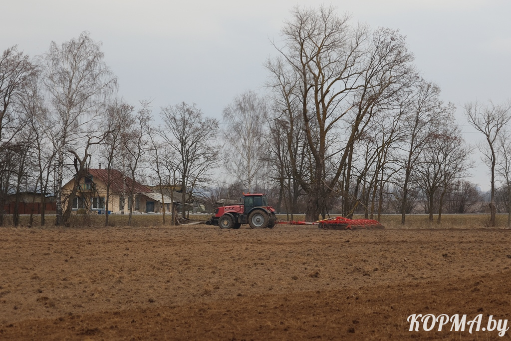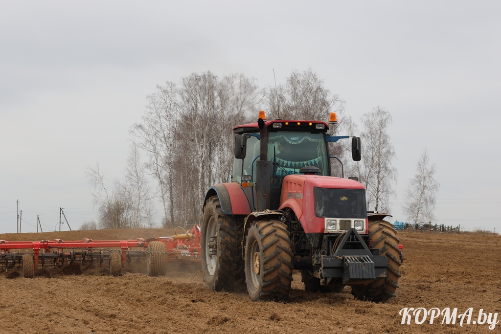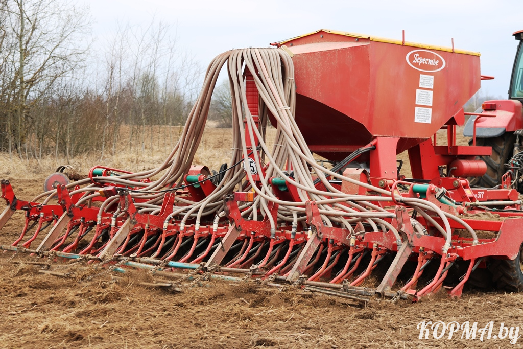 На часах начало одиннадцатого утра, а работа в поле началась ещё в семь и к этому часу кипит вовсю. Для того, чтобы успеть всё в срок, работники КУП «Кормалён» трудятся не покладая рук. На сегодняшний день в поле вышло 13 единиц техники: 2 культиватора и 4 посевных агрегата, 4 КПС и 3 ЭКМ. Всего в этом году должно быть засеяно 3012 гектаров, за один день посевной аграрии уже осилили 235 гектаров. Специалисты говорят: «Главное – чтобы погода не подвела».
