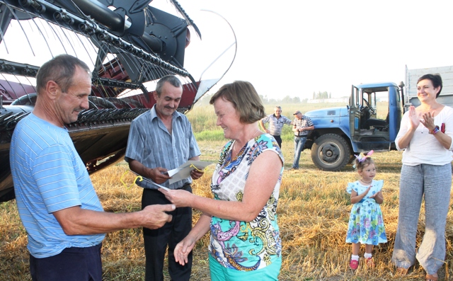 В субботу, 19 августа, мы чествовали два экипажа из КСУП «Ново-Зеньковский» в составе Сергея Савельева – комбайнера и Владимира Ковалева – помощника; Николая Ганжурова – комбайнера и Алексея Зорука – помощника.