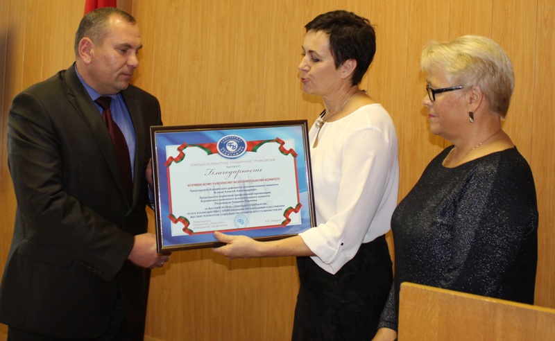 Во вторник, 30 октября, состоялось очередное заседание районного исполнительного комитета. Его работа началась с приятного момента. За высокий уровень социального партнерства, тесное взаимодействие с профсоюзными организациями в достижении значимых результатов социально-экономического развития района Кормянский районный исполнительный комитет удостоен Благодарности областного объединения профсоюзов. Заслуженную награду принимали глава районной вертикали Алексей Ясонов и председатель первичной профсоюзной организации, главный бухгалтер райисполкома Людмила Подоляцкая, а вручила ее председатель районного объединения профсоюзов Любовь Ларченко.