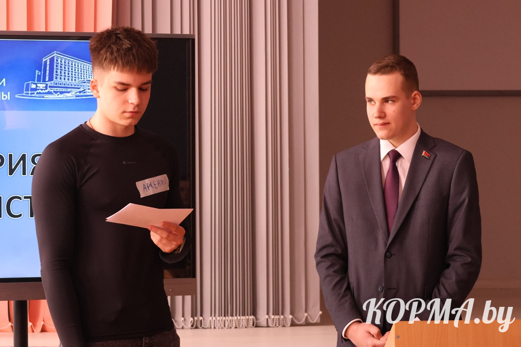 Участие в семинаре принимали заместитель председателя Кормянского райисполкома Александр Соловьёв, главный редактор газеты «Зара над Сожам» Елена Лещенок, начальник отдела идеологической работы и по делам молодёжи райисполкома Элла Фомичёва. В качестве будущих молодых политиков выступили члены Молодёжного совета, действующего при Кормянском районном Совете депутатов, молодые специалисты, старшеклассники.