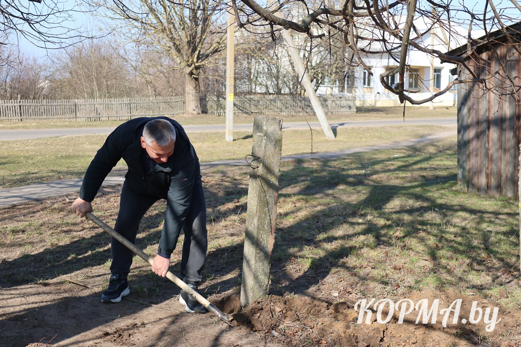 Прилегающую территорию к памятнику воинам, погибшим в годы Великой Отечественной войны, приводили в порядок жители агрогородка Барсуков.