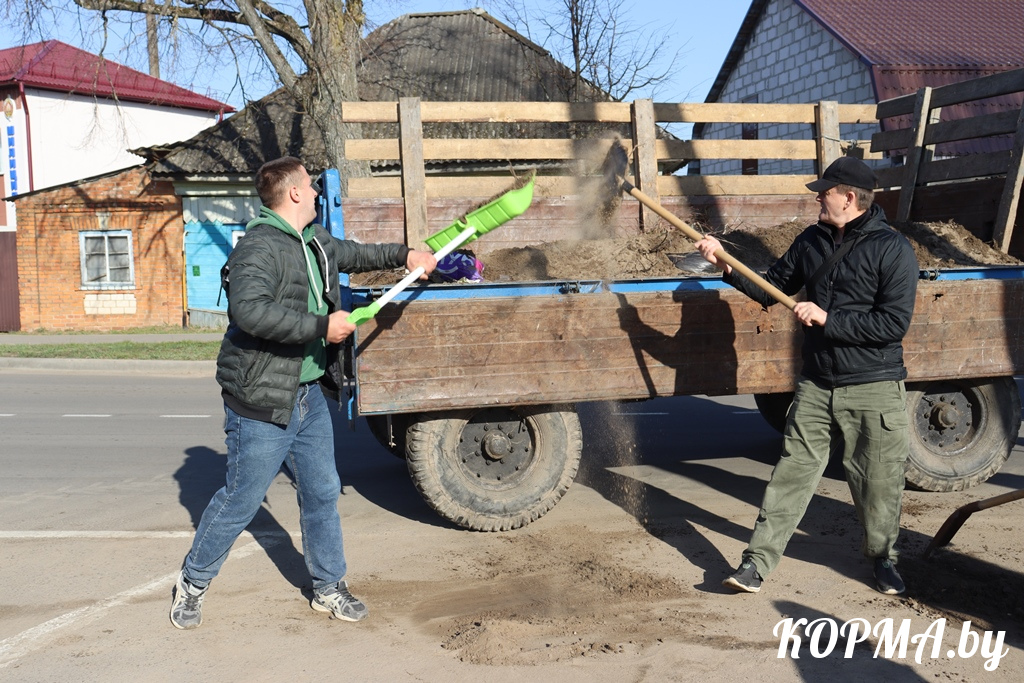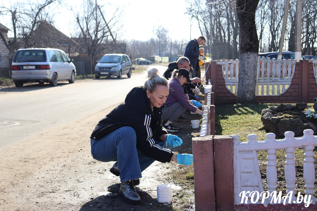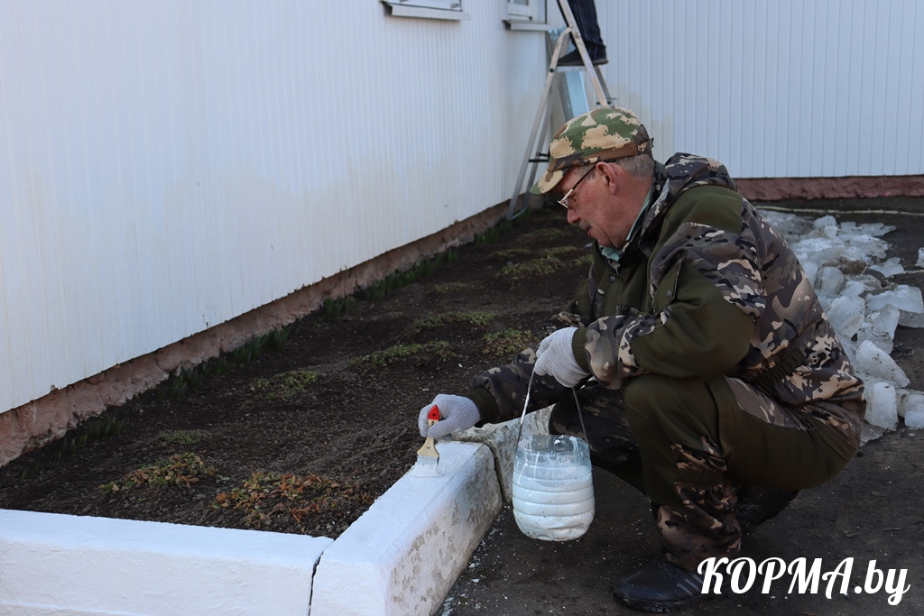 Примечательно, что трудятся все слаженно, в хорошем настроении, успевая не только создавать красоту и уют на кормянских улицах, но и пообщаться с коллегами.