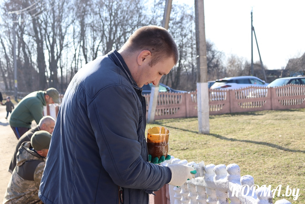 На закреплённых территориях наводят чистоту сотрудники Департамента охраны, РОВД, детско-юношеской спортивной школы, коммунального предприятия и других организаций. Одни расчищают дороги и тротуары от песка и пыли, другие сгребают оставшуюся после зимы сухую растительность, третьи белят и красят бордюры и заборы. Дело нашлось каждому.