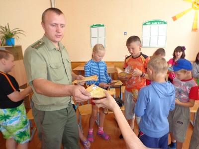 После демонстрации фильма инспектор группы пропаганды и обучения Владимир Цыкуненко провел лекцию на тему пожарной безопасности, поведения в период каникул, привел статистику пожаров и несчастных случаев с детьми в республике и Кормянском районе. Затем ребятам был задан ряд вопросов на пожарную тематику, на которые они с большим энтузиазмом отвечали. Была предоставлена возможность примерить на себя обмундирование пожарных спасателей: костюм, каску и пояс, поближе рассмотреть пожарный извещатель.