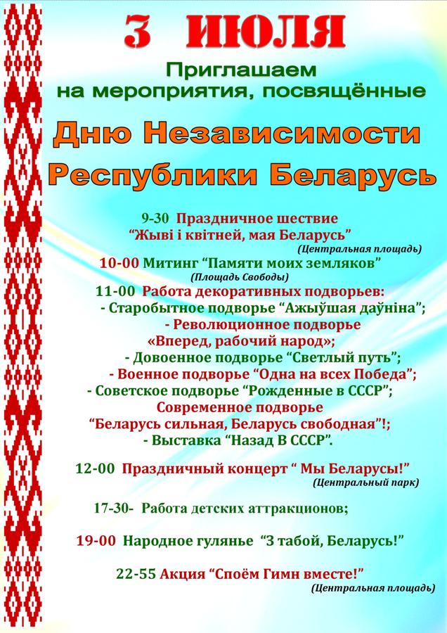 Анонс мероприятий 3 июля, посвященных Дню Независимости Республики Беларусь