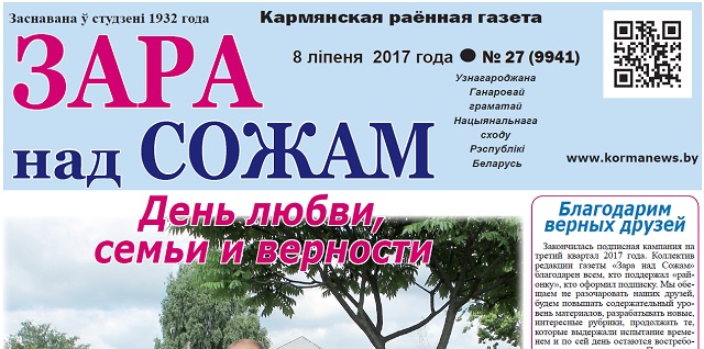 Закончилась подписная кампания на третий квартал 2017 года. Коллектив редакции газеты «Зара над Сожам» благодарен всем, кто поддержал «районку», кто оформил подписку. Мы обещаем не разочаровать наших друзей,