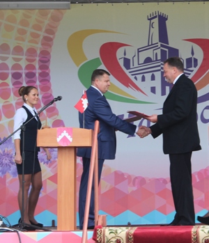 Особо торжественно прошло подписание соглашения о сотрудничестве между Чечерским районом и латвийским городом Краславой. Документ подписали председатель Чечерского райисполкома Виктор Дорошевич и председатель Краславской краевой думы Гунарс Упениекс.