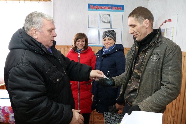 В первом сельхозпредприятии подарки и Благодарности от райкома профсоюза работников агропромышленного комплекса принимали операторы машинного доения МТФ «Литвиновичи» и «Октябрёво» Надежда Юрочкина и Наталья Ковганова, а также операторы по уходу за молодняком крупного рогатого скота товарных ферм «Вощанки» и «Зятковичи» Анатолий Шураев и Дмитрий Куриленко. Им их вручили председатель районного объединения профсоюзов Любовь Ларченко и председатель районного комитета профсоюза работников агропромышленного комплекса Елена Лещенок.