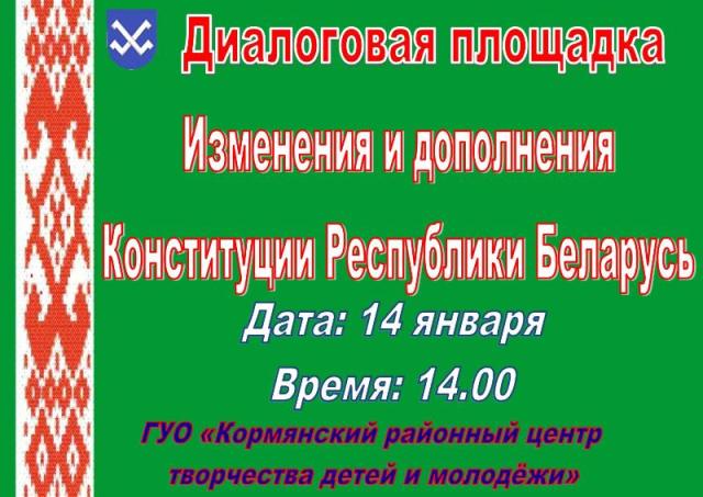 Общая координация работы диалоговых площадок осуществляется отделом идеологической работы, культуры и по делам молодёжи Кормянского райисполкома