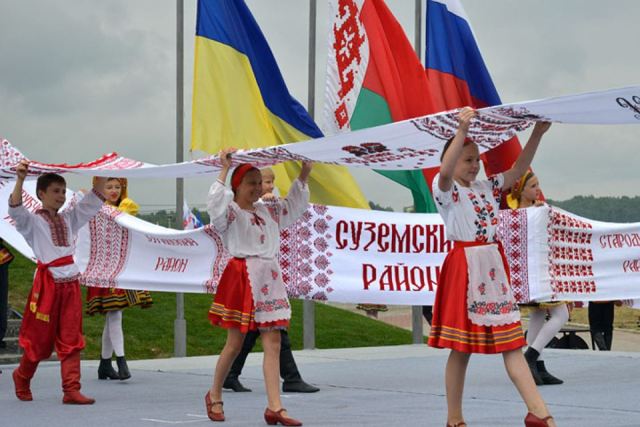 Это не первый мой визит в этот город. И всегда я еду туда по зову сердца. Сразу скажу, что к празднику город преобразился, похорошел. Всюду на флагштоках развевались многочисленные флаги России, Беларуси, Украины. Здесь же были хозяева и гости в национальных костюмах: русских, белорусских, украинских. Свою причастность к родству по происхождению, по языку и культуре лично ощущал, когда на одной площадке видел гончара из России (г. Орел), ткачиху из Беларуси (г. Ветка), мастеров чеканки из Украины (г.Чернигов), и все они в национальных одеждах и говорили на том языке, на котором хотели. Ибо мы все понимаем язык друг друга.