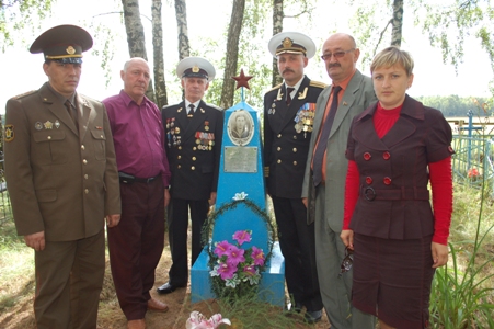 Накануне Дня Военно-морского флота А.М. Старотиторов приехал к нам, чтобы воздать почести памяти В.М. Жлобо, которому в этом году исполнилось бы 55 лет и прошло 35 лет со дня гибели. Александр Михайлович приехал не один, с ним прибыли: председатель Гомельского областного отделения ОО «Белорусский союз моряков», капитан 2-го ранга Сергей Николаевич Горецкий, который служил на Северном морском флоте подводником; ветеран Черноморского флота, старший мичман надводных кораблей Петр Иванович Мигдаленок, служивший с 1962 по 1992 год в Севастополе кадровым военным. С Петром Ивановичем приехала его жена, единомышленник, боевая подруга Наталья Петровна. Делегация, в которую также входили председатель районного Совета депутатов Н.В. Притыченко, председатель Ворновского сельского Совета Т.М. Ядренцева, и.о. военного комиссара Кормянского района А.С. Сечко, главный зоотехник-селекционер Ч.Т. Шотик, у могилы В.М. Жлобо почтили его память и возложили венок и цветы. Наталья Петровна и Петр Иванович вспоминали разные трагические случаи, произошедшие на военных кораблях.