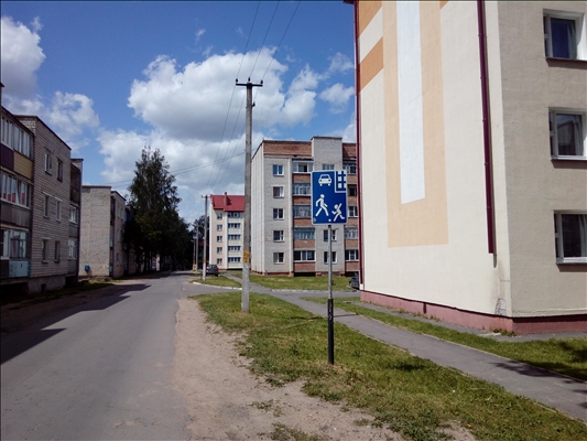 Фото по установке дорожного знака «Жилая зона» при въезде на ул. Свободы с ул. им. Ленина г.п. Корма.