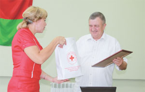 На конференции за активную деятельность первичной организации отрасли здравоохранения района и большой личный вклад в дело БОКК Валерию Маевскому была вручена Почетная грамота областной организации Белорусского общества Красного Креста, а также подарок. Вручила заслуженную награду Татьяна Шехтер как председатель президиума районной организации БОКК.
