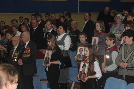 Завершился праздничный день торжественным концертом «Земля, опаленная войной» на сцене районного Дома культуры. Жители, пришедшие его посмотреть, получили глубокие впечатления от грандиозного зрелища, специально подготовленного к этой дате. С первых аккордов оно окунуло зрителей в ужасы войны с воем снарядов, свистом пуль, грохотом взрывов, огнем пожаров, настраивая на соответствующий лад. Стоя, встретили они, отдавая дань уважения, торжественный вынос планшетов с портретами наших земляков, как сложивших головы в боях с врагами, так и ныне живущих.