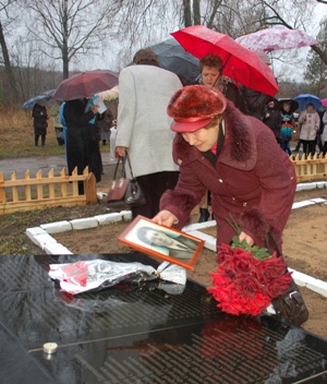 Мероприятия, посвященные 70-летию освобождения района от немецко-фашистских захватчиков, продолжились в деревне Волынцы, где в братской могиле захоронено 32 уроженца Клинцовщины. Здесь митинг был особенно трогательным. Потому что впервые на могилу к погибшим приехали их родственники. Например, Мария Евгеньевна Землянская прибыла из Владивостока. Она девять часов летела самолетом, чтобы побывать на месте захоронения отца Евгения Никитича Землянского. Трогательной была символическая встреча. Мария Евгеньевна долго гладила рукой гранитную плиту с именем отца, зажгла лампаду и поставила к памятнику портрет. Она благодарила всех организаторов этого мероприятия за предоставленную возможность приехать на могилу отца, за сохранение памяти о погибших. Теплые слова благодарности высказывали и другие потомки солдат Великой Отечественной.