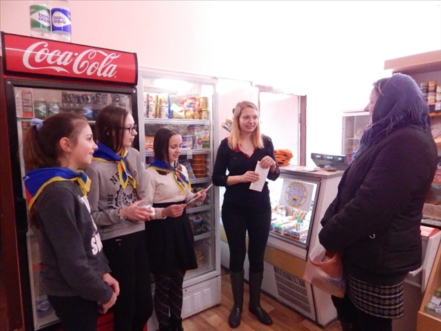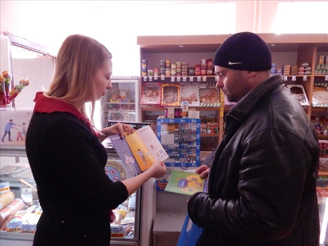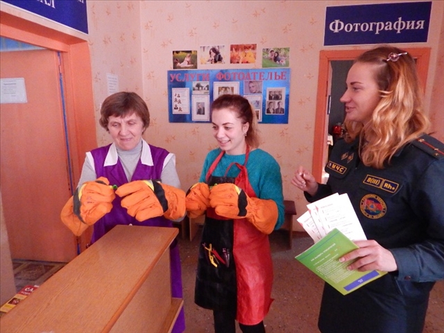 — Мама, я знаю, что это за акция! – Именно такими словами нас встречала девочка в одном из отделов. И в этот раз участие в акции приняла ее мама. В разных магазинах (электроприборов, продуктовоых, бытовой химии, детских игрушек) в здании комбината бытового обслуживания сотрудники МЧС совместно с членами белорусской молодежной общественной организации спасателей-пожарных проводили беседы и вручали наглядно-изобразительную продукцию в соответствии с темой отдела. Будь-то малыш или взрослый, все без исключения принимали участие в акции. Для посетителей были подготовлены загадки, им предлагали примерить перчатки с крагами, боевую одежду, показывали, как работает автономный пожарный извещатель.