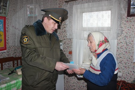 Забота о ветеранах, участниках Великой Отечественной войны, узниках концентрационных лагерей, тех, кто был угнан на рабские работы в фашистскую Германию, проявляется постоянно. Но накануне праздников Великой Победы, других знаменательных дат – забота особенная. Представители власти, общественных объединений, молодежных организаций, социальных служб приезжают домой к героическим людям, говорят теплые слова благодарности, вручают подарки. Так было и накануне 70-летней годовщины со Дня освобождения Кормянщины от немецко-фашистских захватчиков. Несколько групп, первую возглавляла заместитель председателя Кормянского райисполкома Татьяна Валентиновна Шехтер и, в которую вошли председатель районного совета ветеранов Лариса Владимировна Ланюгова и ее заместитель Галина Михайловна Чулкова, вторую – районный военный комиссар Андрей Сергеевич Сечко и другие, побывали в гостях у наших дорогих ветеранов, которых, к сожалению, становится с каждым годом все меньше.