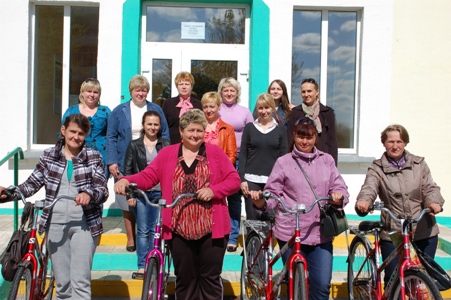 На прошлой неделе, в субботу, в территориальном центре социального обслуживания населения состоялось довольно значимое мероприятие: в гости к работникам и участникам различных клубов по интересам приехали активисты первичной организации г. Гомеля общественного объединения «Белорусская ассоциация молодых христианских женщин». Председателем ее является Елена Трубарова. Молодые и активные женщины привезли в подарок социальным работникам велосипеды, которые станут хорошим подспорьем в работе. Ведь подопечные социальных работников могут проживать на довольно приличном расстоянии друг от друга. А еще необходимо успеть в магазин закупить продукты, да и мало ли какие поручения могут дать бабушки и дедушки. Двухколесные машины намного упростят и ускорят процесс обслуживания стариков.