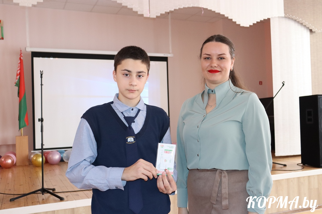 Первый секретарь РК ОО «БРСМ» Анастасия Шмурадко поздравила всех с предстоящим Днём Конституции Республики Беларусь и вручила членский билет вступившему в ряды организации Кириллу Гусленкову. Получение документа в преддверии столь важной даты стало особенно торжественным и памятным событием.