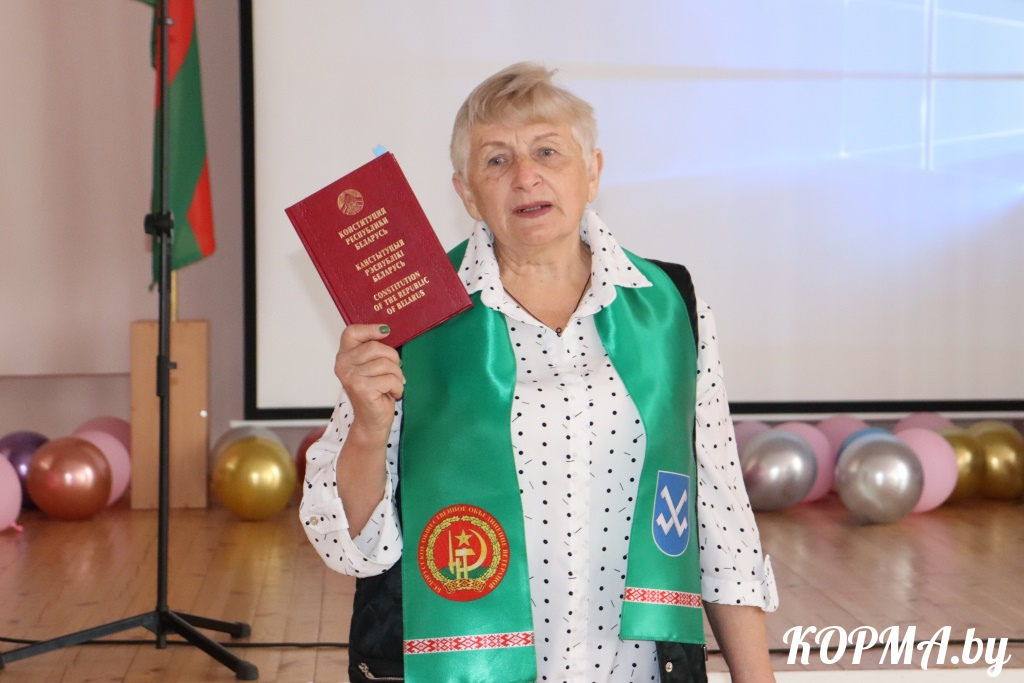 – В преддверии праздника я взяла Конституцию и решила посмотреть, есть ли в ней хоть одна статья, которой я не пользовалась бы в жизни. И оказалось, что все они так или иначе меня касались. Право на жизнь, жильё, образование, медицинское обслуживание, на труд, участие в выборах и многие другие. Особенно отмечу важность закреплённой в Конституции обязанности сохранения исторической памяти о Великой Отечественной войне. Она не закончится, пока не будет найдена последняя могила погибших на полях сражений бойцов. И буквально вчера в наш район приезжал житель Республики Саха, чтобы побывать на братской могиле, где похоронен погибший в боях за наш район родной человек. На протяжении 82 лет они разыскивали это место. И очень важно, что память о нём сохранилась на Кормянщине, что близкие героя смогли побывать здесь.