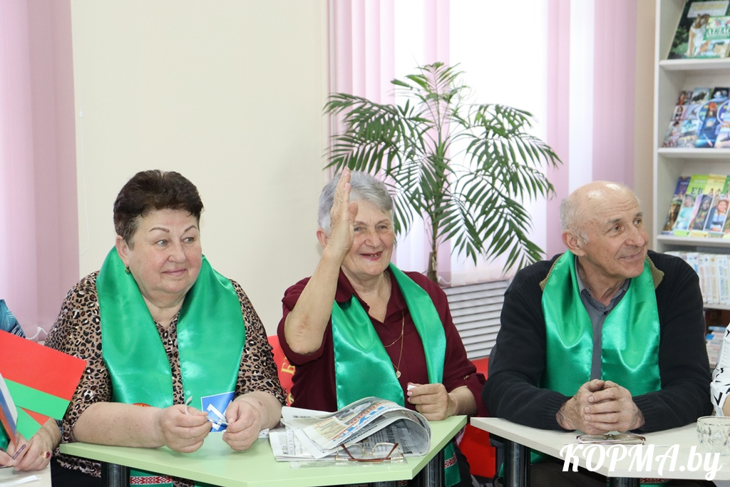Затем встреча продолжилась живым общением молодёжи и ветеранов труда. Было здесь место и дружному обдумыванию ответов на самые разнообразные вопросы, и обсуждению различных тем, и шуткам. Например, когда ребятам предложили назвать общие праздники Беларуси и России, первым они назвали День Победы. Оживление вызвало и предложение перевести слова с русского на белорусский язык и наоборот. Причём слова, предложенные ветеранами, переводили ребята, а названные школьниками – представители старшего поколения.