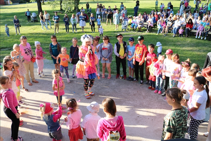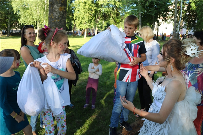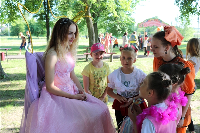 Вечером, 1 июня, сказочные герои подарили ребятам много счастливых моментов. Сказка-перевертыш, которая называлась «Время чудес или Волшебная шкатулка» была представлена на сцене для всех присутствующих. А почему перевертыш? Потому что все сказочные герои перепутались в сундуке и принимали себя не за того, кем являются. Бармалей думал, что он Баба-яга, она в свою очередь думала, что является Бармалеем. Кощей с Пьеро тоже поменялись ролями. Но все решилось благодаря старанию маленьких ребят, которые на протяжении мероприятия танцевали и играли вместе со сказочными героями. Стоит отметить, что в представлении были задействованы не только профессиональные актеры, но и любители, которые имеют абсолютно разные профессии: сторож, врач, учитель, журналист, сотрудник милиции, инструктор по вождению, секретарь, сотрудник отдела идеологической работы, культуры и по делам молодежи, студентка. Под чутким руководством Ольги Сафроненко, все они справились с поставленной задачей на 100%. Равно, как и юные артисты из танцевального коллектива ЦКиД «Фейерверк». Дети остались довольны.