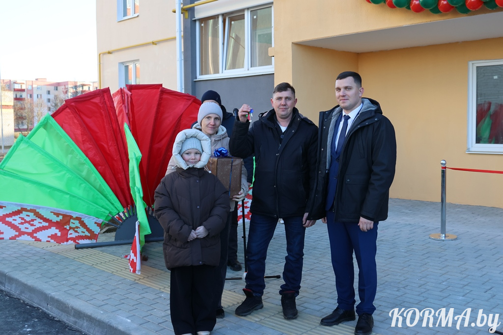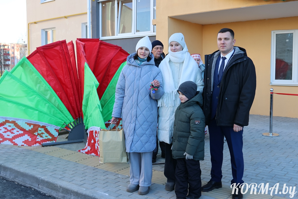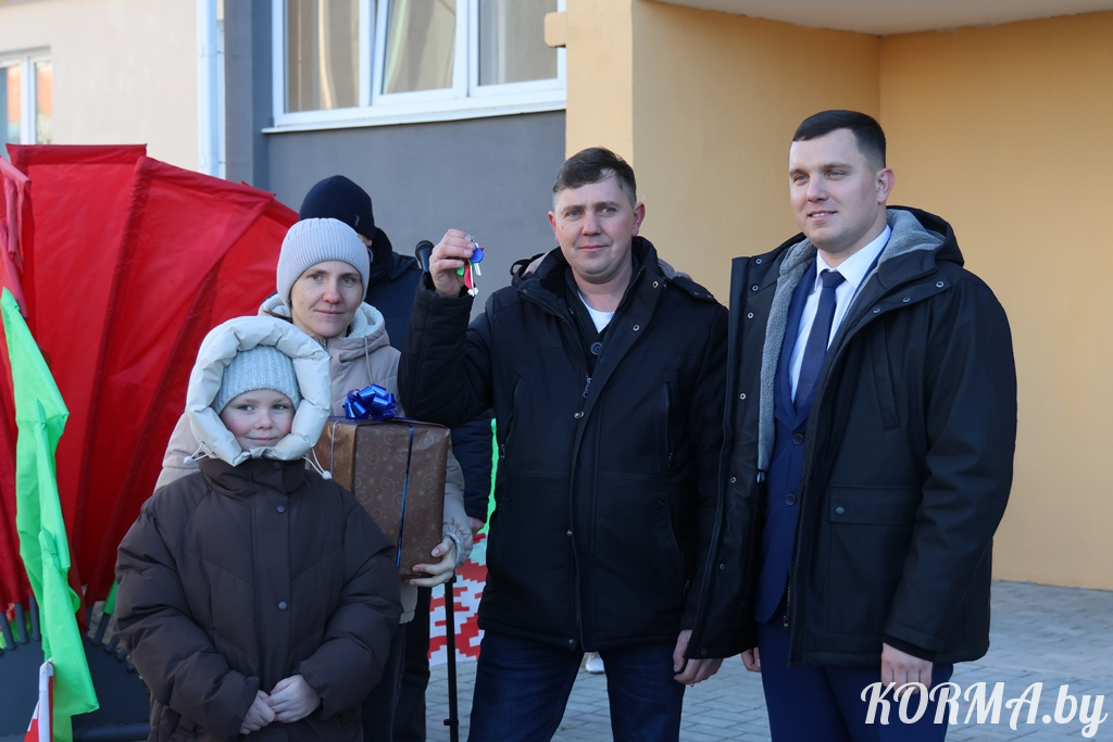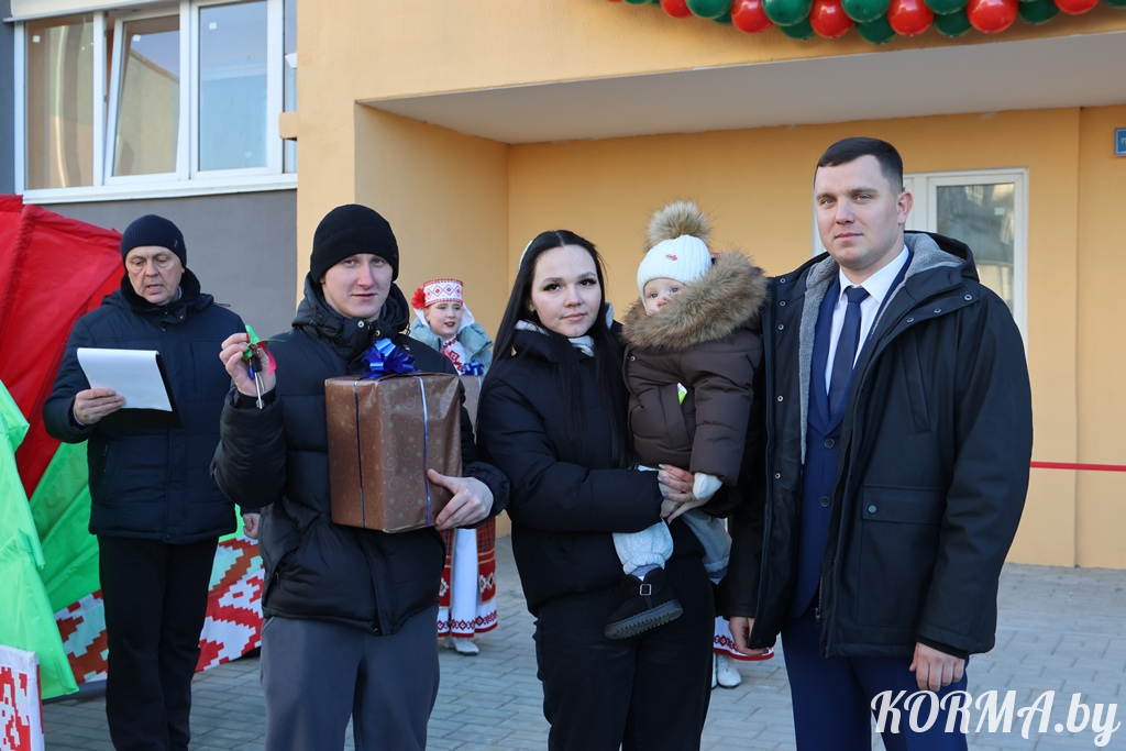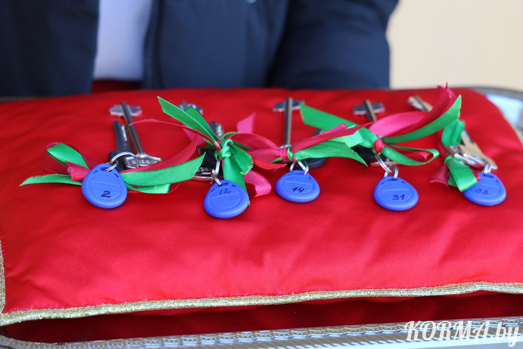 Главным новогодним подарком у новосёлов по адресу: г. п. Корма, улица Советская, 1а стали новенькие, просторные и светлые квартиры. Сегодня в Корме торжественно перерезали ленточку в недавно построенном многоэтажном доме, рассчитанном на сорок квартир. Участие в торжественной церемонии принял председатель Кормянского райисполкома Дмитрий Шинкаренко и председатель Кормянского районного Совета депутатов Татьяна Шехтер.