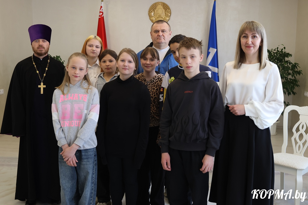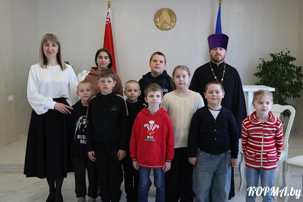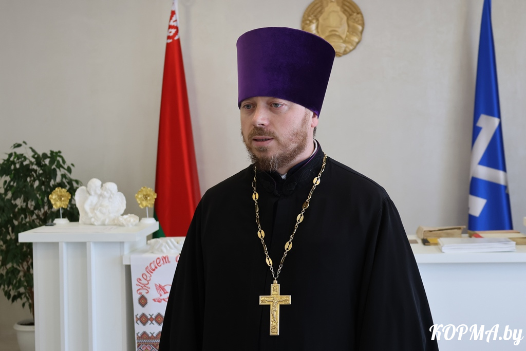 Настоятель прихода храма святителя Николая Чудотворца в г. п. Корма, обращаясь к ребятам, напомнил о том, что семья – это главная ценность. Именно в семье человек учится любить, заботиться о других.