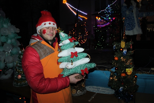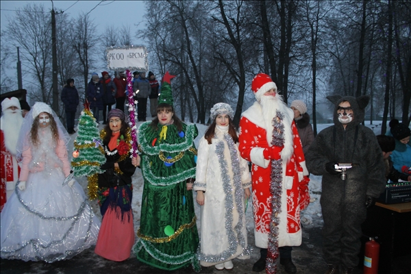 Действо началось под гром огромных хлопушек. По условиям необходимо было показать театрализацию и представить елку, которая бы отличалась от других своей оригинальностью, неповторимостью. Первыми на сцену вышли медицинские работники. Их веселая программа принималась на «ура», а елочка из надутых медицинских перчаток вызвала восторг не только у зрителей, но и у жюри, которое возглавили Мороз Иванович Рождественский (Дед Мороз), Снегурочка, а также в его состав вошли Наталья Сидорова и Светлана Козлова – начальник отдела идеологической работы, культуры и по делам молодежи.