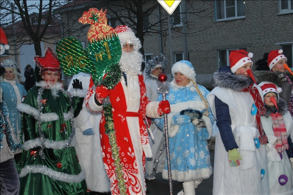 Пришло время подвести итоги конкурса. Нелегко было Морозу Ивановичу определиться с победителем. Однако решение принято. В итоге третье место занял коллектив райпо, второе – льнозавода и победили в нелегком состязании представители КЖПУП «Корма». Лучшую елку создали в райбольнице. Однако еще не была выполнена одна необходимая процедура – нужно было включить огни на главной елке района. Под громкие возгласы лесная красавица засияла. Получив награды из рук Мороза Ивановича, победители и призеры отправились на большой танцевальный флеш-моб. А как синхронно двигались дедушки с внучками и сказочными героями. Их роскошный перепляс заводил всех. Никто не замечал огромных хлопьев мокрого снега, наоборот, это только подзадоривало. Затем все, кто присутствовал на площади, образовали огромный хоровод вокруг сияющей елки.