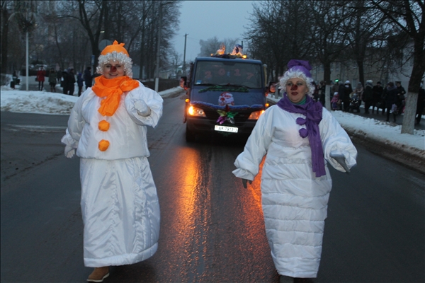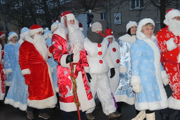 Не ожидал, что парад и конкурс Дедов Морозов и Снегурочек вместе с другими персонажами народного фольклора пройдут в Корме так грандиозно. Большой праздник подарили жителям и гостям райцентра работники культуры, представители предприятий, учреждений и организаций района. Торжественное шествие стартовало от здания узла связи. В авангарде на ярко украшенном автомобиле с мигалками ехали главный Дед Мороз Иванович Рождественский со своей внучкой Снегурочкой. Дорогу им расчищали веселые Снеговики. Кавалькада в сопровождении почетной пешей свиты въехала на центральную площадь. Совершив почетный проезд вокруг главной елки, Дед Мороз с внучкой торжественно сошли с морозовоза и направились к концертной площадке. Их встретили многочисленные зрители. Поднявшись на сцену, хозяева праздника поприветствовали всех и отдали рапорт о начале праздника заместителю председателя Кормянского райисполкома Наталье Сидоровой, попросили ее дать разрешение начать конкурсную программу.