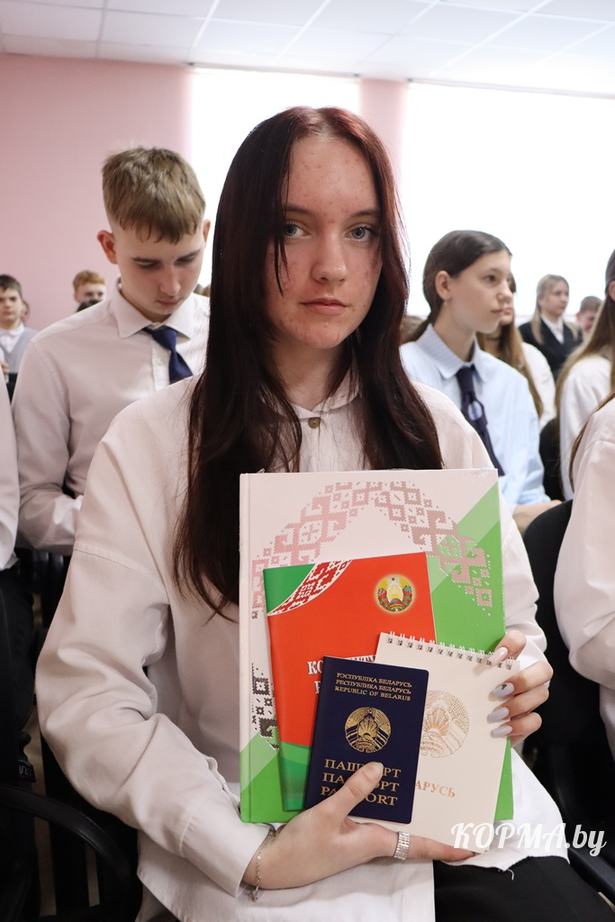 — В преддверии этого праздничного дня мы собрались здесь, чтобы вручить вам, молодым жителям нашего района, ваш самый важный документ – паспорт гражданина Республики Беларусь. Этот момент можно смело назвать днём вашего гражданского совершеннолетия. Получая паспорт, вы перешагиваете порог во взрослую жизнь, становитесь полноправными членами общества, ответственными за свою судьбу, судьбу своей малой родины и всей страны в целом. Быть гражданином Беларуси – высокая честь, – отметил Дмитрий Александрович.