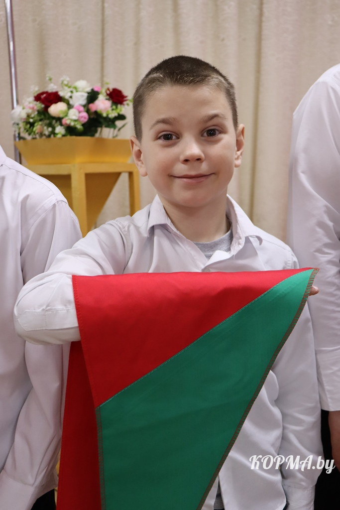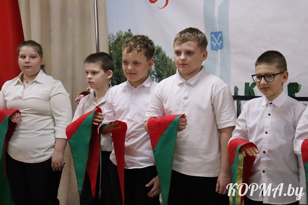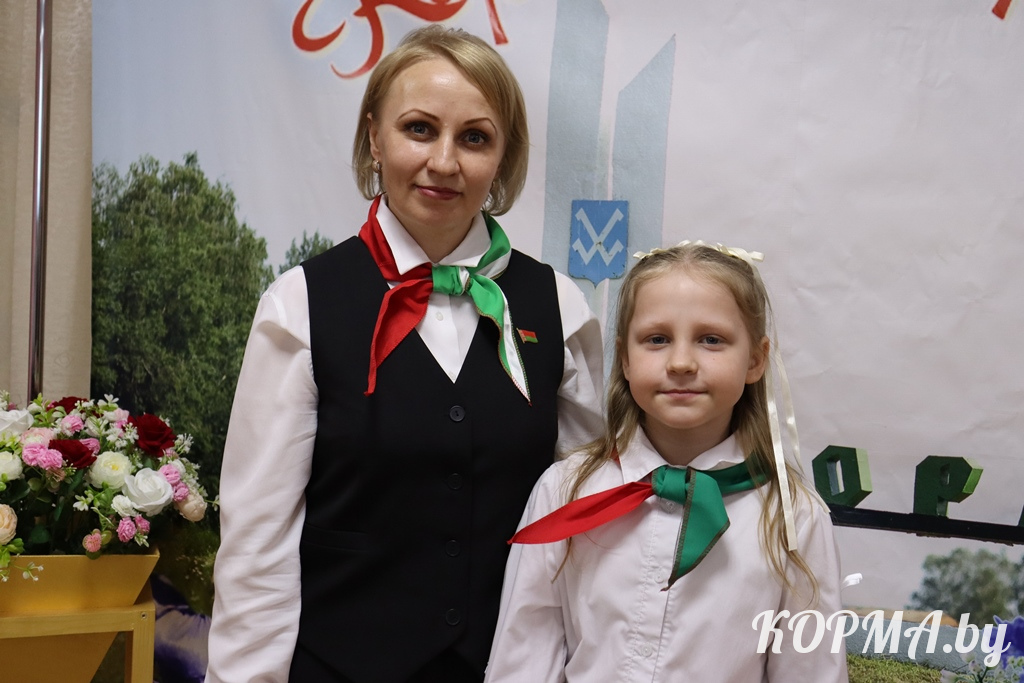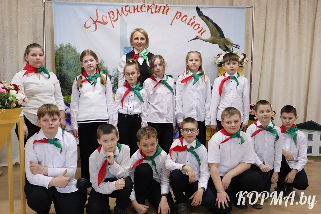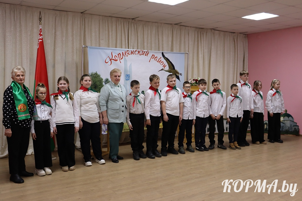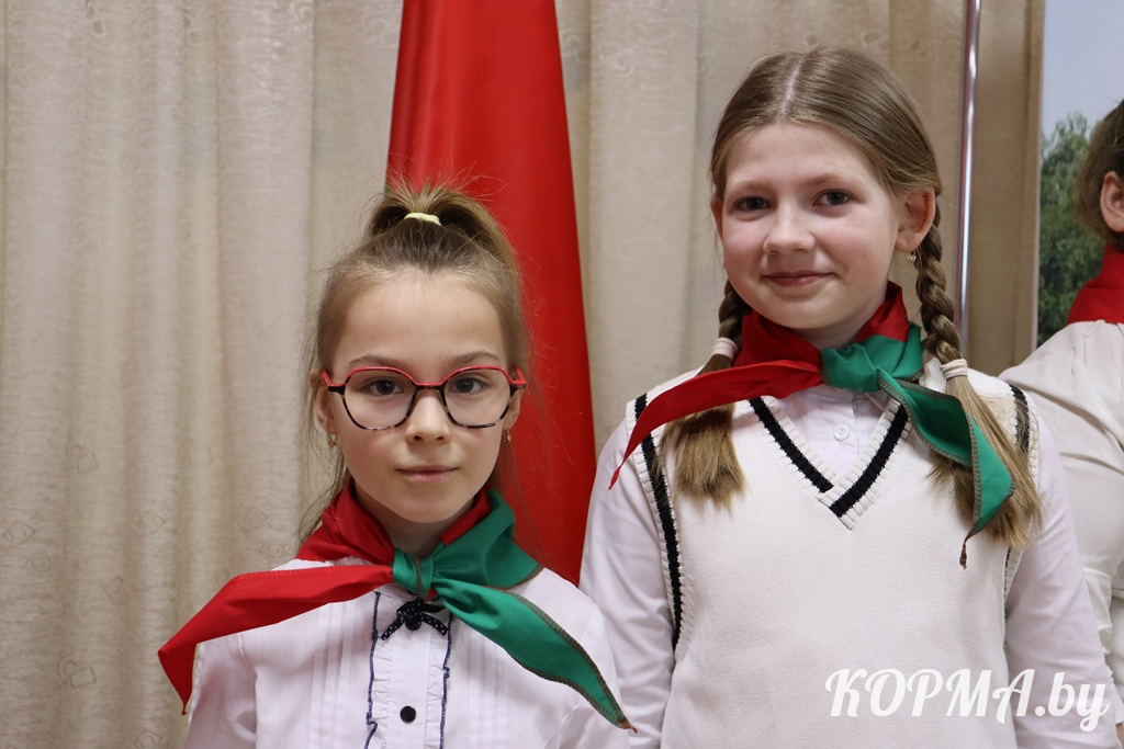 В торжественной обстановке пополнились и ряды общественного объединения «Белорусская республиканская пионерская организация». Представители Кормянского районного Совета ветеранов Екатерина Быковская и Людмила Глаздовская повязали галстуки юным пионерам и поздравили всех присутствующих с предстоящим праздником.