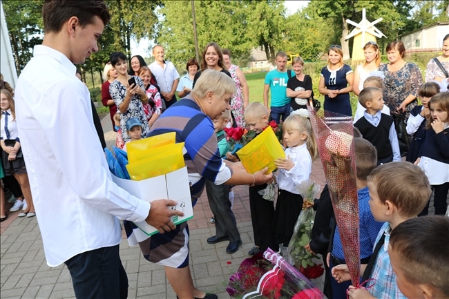 Солнечным утром 1 сентября мы вместе с главным специалистом отдела образования, спорта и туризма Ириной Вышняковой отправились на линейку в Хизовскую школу. Во дворе учреждения образования застали волнительное оживление – шли последние приготовления к празднику. Затем построение, фанфары и действо началось. В нем присутствовали все традиционные моменты: поднятие флага, поздравление директора школы Маргариты Кухоренко, выступления гостей, трогательные стихи первоклассников, с радостью принимавших подарки, напутствия выпускников, и, конечно же, трель первого в этом учебном году звонка.