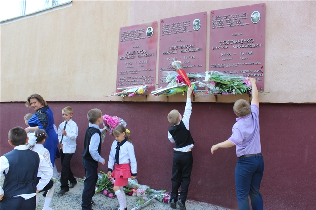 Флаг поднят. И с приветственной речью ко всем обратилась директор школы Елена Суворова. Она отметила, что одних ребят впереди ждут летние каникулы, возможность отдохнуть и набраться сил. Другим предстоят экзамены. Но всех их по-прежнему любят и ждут в школе. Завершая свое выступление, она вручила грамоты и дипломы талантливым ученикам, занявшим призовые места в конкурсах и соревнованиях областного и республиканского уровня, благодарственные письма родителям школьников. Со словами добрых пожеланий и напутствий обратились к учащимся почетные гости праздника, а также первая учительница и родители выпускников. Каждый из них вложил в свои слова особые чувства, в которых сочетались гордость за детей и их достижения, горечь от предстоящего прощания и надежда на новые успехи и свершения. Вокальные, танцевальные номера и стихотворные выступления подарили присутствующим первоклассники и выпускники. И порой невозможно было сдержать слезы, настолько это было проникновенно и эмоционально. Особенностью линейки в этой школе является традиция возлагать цветы к мемориальным доскам в честь погибших воинов-интернационалистов. Не стал исключением и нынешний год.