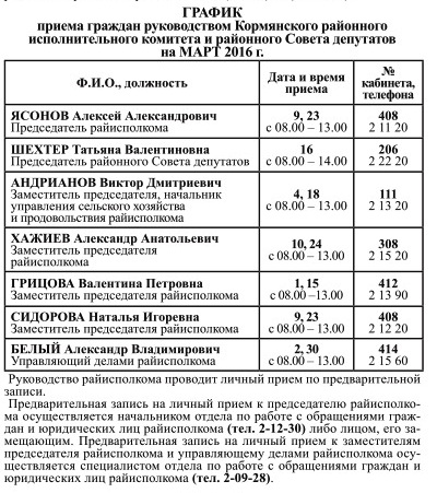 Прием граждан администрацией области и Кормянского района