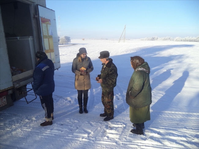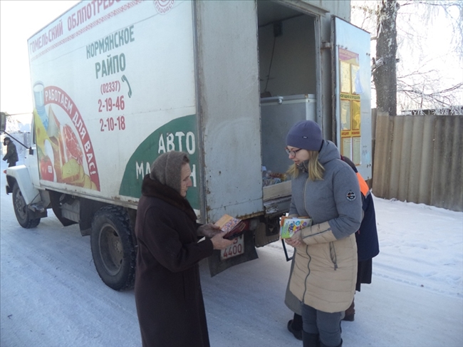 Морозный, но солнечный день не заставит бабушек и дедушек сидеть дома, когда они ждут приезда автолавки. Совместные выезды работника Кормянского районного подразделения МЧС с районным потребительским обществом по населенным пунктам уже имеют систематический характер. В этот раз маршрут рейда автолавки следовал через населенные пункты Лесовая Буда, Михалевка, Дубовица, Норковщина и Струкачев.