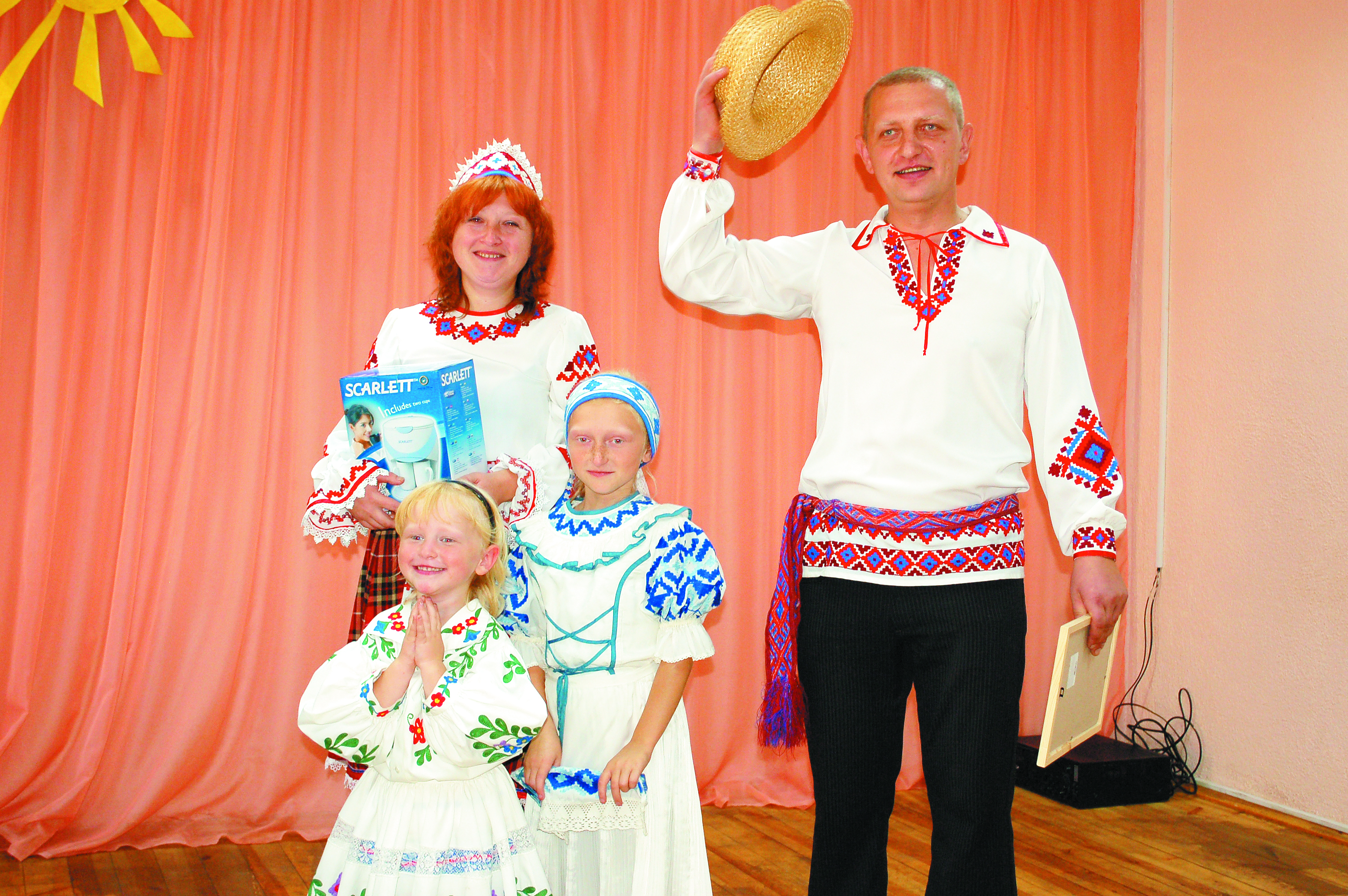 И вот — награждение. Да, Витренки в этот раз не одержали победу, им присвоено звание «Самая дружная семья». Василий, Алла и их дети Олег, Яна и Вероника получили из рук Игоря Завалей диплом и ценный подарок.