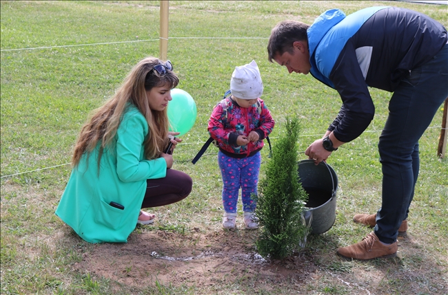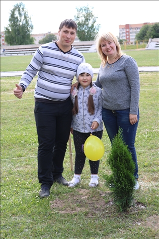 У каждой семьи была своя цель. Татьяна и Павел пришли вместе со старшим сыном, младшего оставили с тетей, так как ему еще нет и месяца. Они уверены, что их сыновья будут с гордостью рассказывать своим друзьям о том, какой вклад их папа и мама внесли в развитие экологического состояния поселка. Семейный стаж другой пары – Екатерины и Павла совсем еще небольшой – они молодожены, а Татьяна и Владимир только собираются пожениться. Для них посадка дерева – символ зарождения новой семьи. Были и пары, которые давно связаны узами брака. Посадка «семейного дерева» для них – это укрепление их отношений, связь с подрастающим поколением. С умилением можно было наблюдать за маленькими ладошками, которые старались утрамбовать землю возле посаженного дерева. А дети постарше с усердием и большим интересом поливали деревья.