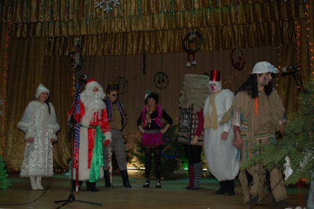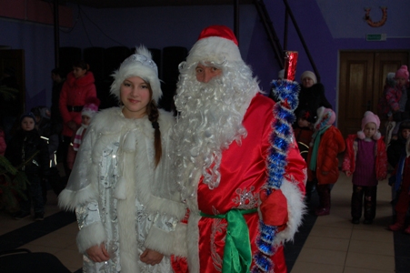 Все зрители перешли в соседний зал, где возвышалась красавица-елка. Тут начались песни, танцы. А дети рассказывали стихи Деду Морозу и Снегурочке.