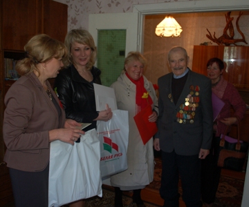 С каждым годом героических людей становится меньше, некоторых подкосили болезни, но есть еще те, кто старается не поддаваться старости, хворям, встречаются с молодежью, рассказывают о боевом прошлом. Мы чествуем их, одариваем заботой, теплом, преподносим подарки. Но им больше дорого внимание, что их не забыли, помогают, чем могут, приезжают в гости. Вот и в этом году, накануне славной даты – 70-летия Великой Победы советского народа в Великой Отечественной войне представители районного исполнительного комитета, районного Совета депутатов, общественного объединения «Белая Русь», молодежной организации, совета ветеранов, районного объединения профсоюзов посетили ветеранов, участников, инвалидов войны, узников концлагерей, чтобы отдать почести и преподнести подарки. Мы побывали у Евгения Иосифовича Максименко, Надежды Фоминичны Евтуховой, Нины Степановны Маньковой, Любови Демьяновны Сафоновой, Евгении Васильевны Захаренко, Надежды Сидоровны Бондаренко, Владимира Иосифовича Альшевского, Ивана Филимоновича Мельникова, Василия Григорьевича Притыченко, Николая Карповича Попкова и многих других. Как я уже говорил, представители власти и общественных организаций: заместитель председателя райисполкома Н.И. Сидорова; и.о. начальника отдела идеологической работы, культуры и по делам молодежи, председатель ОО «Белая Русь» С.Н. Козлова, председатель райкома профсоюза работников АПК Л.М. Шатликова; председатель совета ветеранов Л.В. Ланюгова и другие преподнесли открытки от Президента Республики Беларусь А.Г. Лукашенко, председателя Гомельского облисполкома В.А. Дворника, председателя Кормянского райисполкома А.А. Ясонова, председателя райсовета депутатов Т.В. Шехтер, подарки и денежную помощь. Кроме того Белтелеком всем ветеранам подарил радиоприемники, подключил к интерактивному телевидению и вручил карточки оплаты телефонных разговоров на год. Поздравительные открытки прислал депутат Палаты представителей Национального собрания Республики Беларусь В.А. Щепов. Сувениры, выполненные руками работников и инвалидов Кормянского ТЦСОН, и продуктовые наборы, присланные ООО «Евроторг» г. Минск, развезли директор территориального центра С.А. Богданович и его сотрудники.