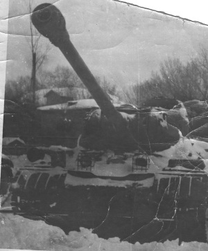 В первое сражение танк вступил в Восточной Пруссии в составе 33 резервного тяжелотанкового полка на Одерском сильно укрепленном плацдарме. Здесь фашисты надеялись остановить наступление советских войск и отчаянно сопротивлялись. Здесь машина получила первое повреждение – порвало гусеницу. Раздумывать было некогда: прямо в гуще сражения, выбросив дымовую шашку, под прикрытием дымовой завесы, экипаж за час сделал ту работу, на которую в обычных условиях ушло бы полдня.