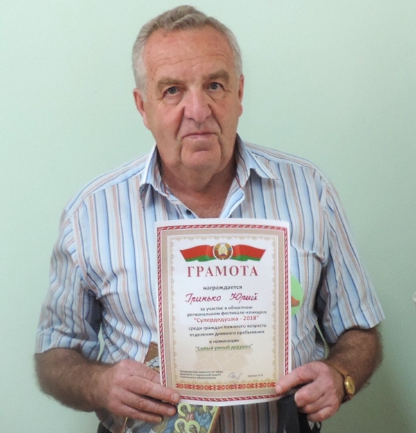 По итогам регионального фестиваля-конкурса Юрий Иванович награжден именной Грамотой в номинации «Самый умный дедушка» и памятным подарком.