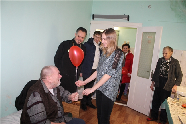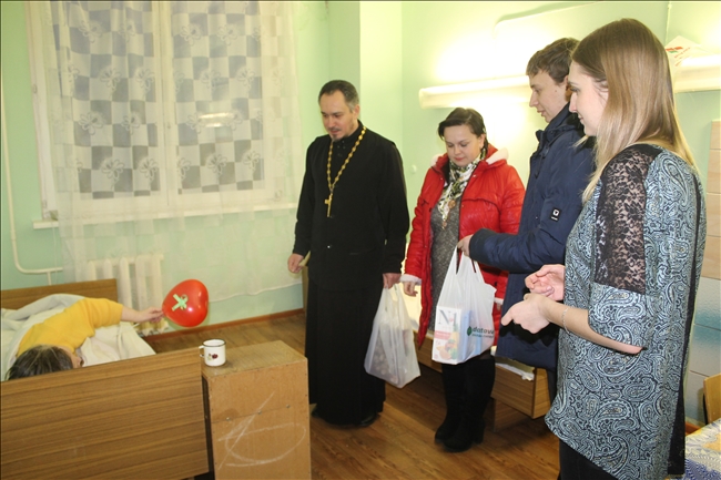 И одно такое в очередной раз сделала активная и неравнодушная молодежь вместе со священником православного храма Святителя Николая Чудотворца в г.п. Корма иереем Виталием Лехновичем. Сотрудник центра культуры и досуга Денис Рыбенков, педагог из центра творчества детей и молодежи Ольга Филимонова и специалист районного комитета БРСМ Алеся Гордиенко с радостью откликнулись на призыв священника поздравить с Новым годом и Рождеством, подарить немного радости и вручить подарки пожилым людям, находящимся в отделении сестринского ухода при Кормянской центральной районной больнице. Вечером в пятницу, 12 декабря, они посетили отделение, где помимо сладостей, напитков, фруктов, газет и журналов раздали пациентам еще и воздушные шарики — символ их добрых сердец, чем очень взволновали и обрадовали одиноких больных людей. Также медработникам были переданы для ухода за подопечными гигиенические средства, приобретенные приходом.