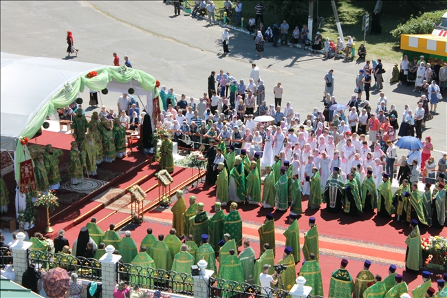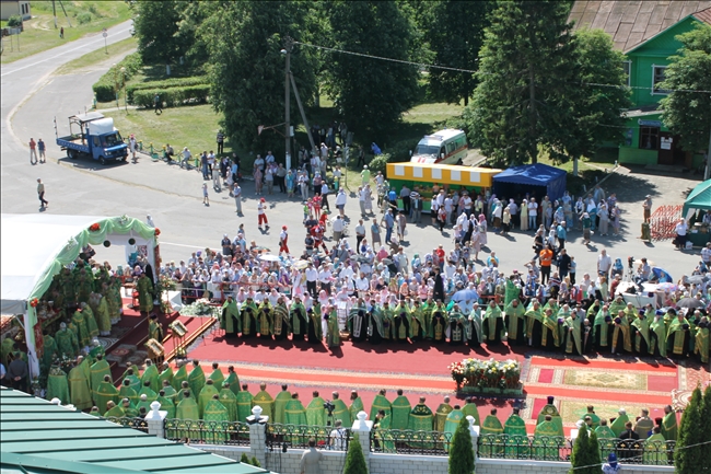 И особенно многолюдно здесь бывает в дни памяти белорусского святого, почитаемого и трепетно любимого народом – праведного Иоанна Кормянского. Один из таких дней отмечается 31 мая. В прошлом году при большом стечении народа отмечалась его 100-летняя годовщина. Сегодня – 20 лет с прославления протоиерея Иоанна Гашкевича в лике местночтимых святых Белорусской Православной Церкви. На торжественное богослужение в этот день съехалось множество духовенства и паломников, причем не только из всех уголков Беларуси, но также из России, Украины и даже Америки.