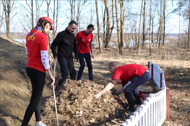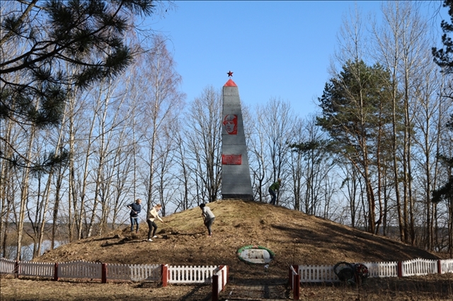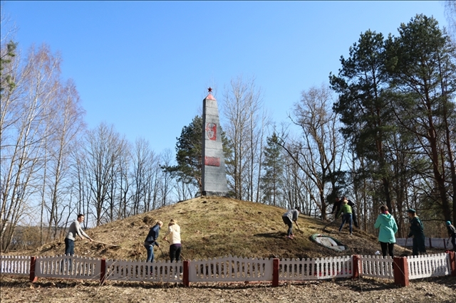 И этот замысел с наступлением тепла осуществился. По инициативе настоятеля храма Свт. Николая Чудотворца священника Виталия, при поддержке районного комитета «БРСМ» и активном участии молодежи в минувшую пятницу был организован выезд волонтеров на курган. На предложение навести порядок в памятном месте откликнулись молодые парни и девушки, работающие в различных организациях городского поселка. Вместе с лидерами молодежной организации района Дмитрием Агеенко и Алесей Гордиенко в трудовом десанте приняли участие представители отдела культуры, идеологии и по делам молодежи, МЧС и РОВД, педагоги Центра творчества детей и молодежи, учащиеся. Высокий холм был очищен от прошлогодней листвы, веток и травы, выметены дорожки, вымыта памятная плита, напоминающая о тех событиях, когда, прорвав здесь оборону противника, наши войска освободили Кормянщину.